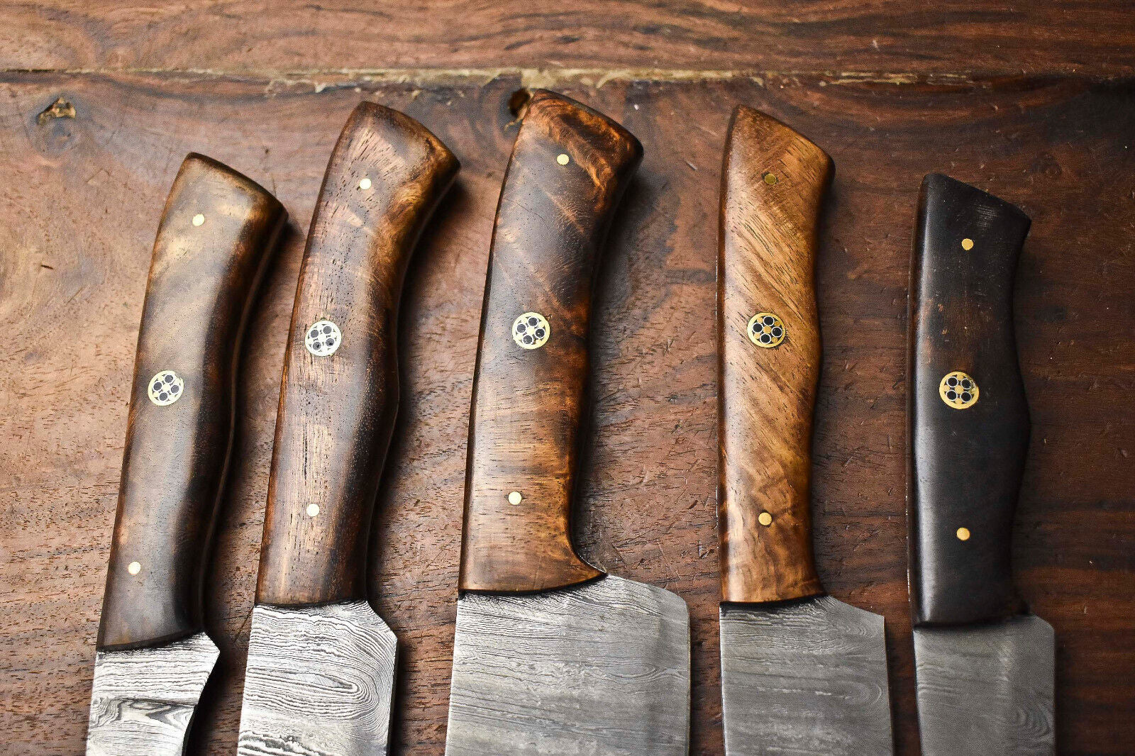 Premium Lot of 5 Handmade Hammered Damascus Steel Chef Knives – Full Tang, 10–13"