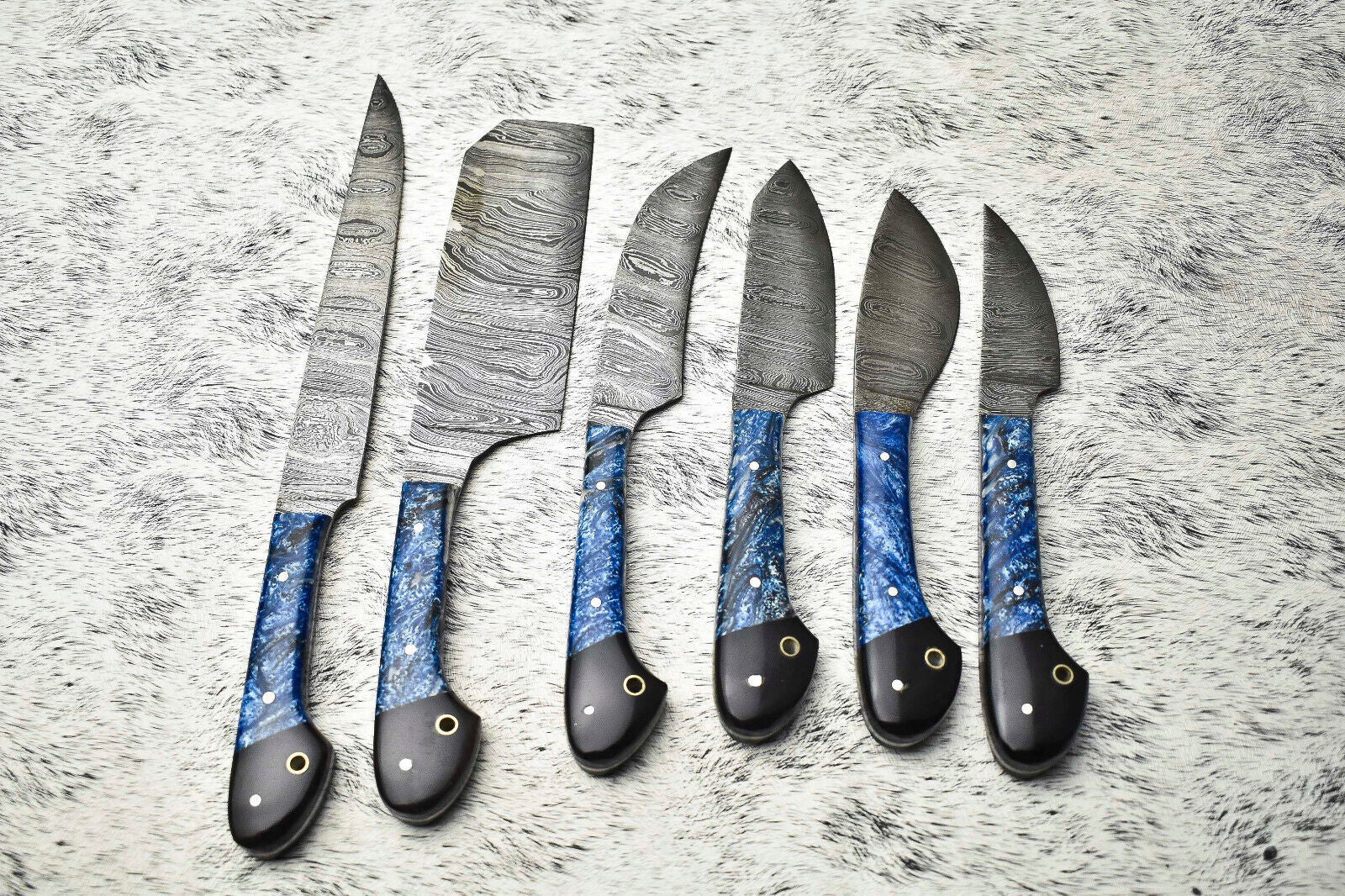 Premium Lot of 6 Handmade Damascus Steel Chef Knives – Full Tang, Artisan Forged Blade Set