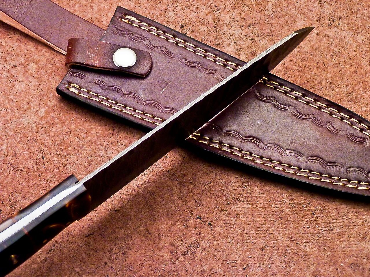 - Each Heritage Forge knife is handmade; slight variations in Damascus pattern and resin handle texture ensure uniqueness.