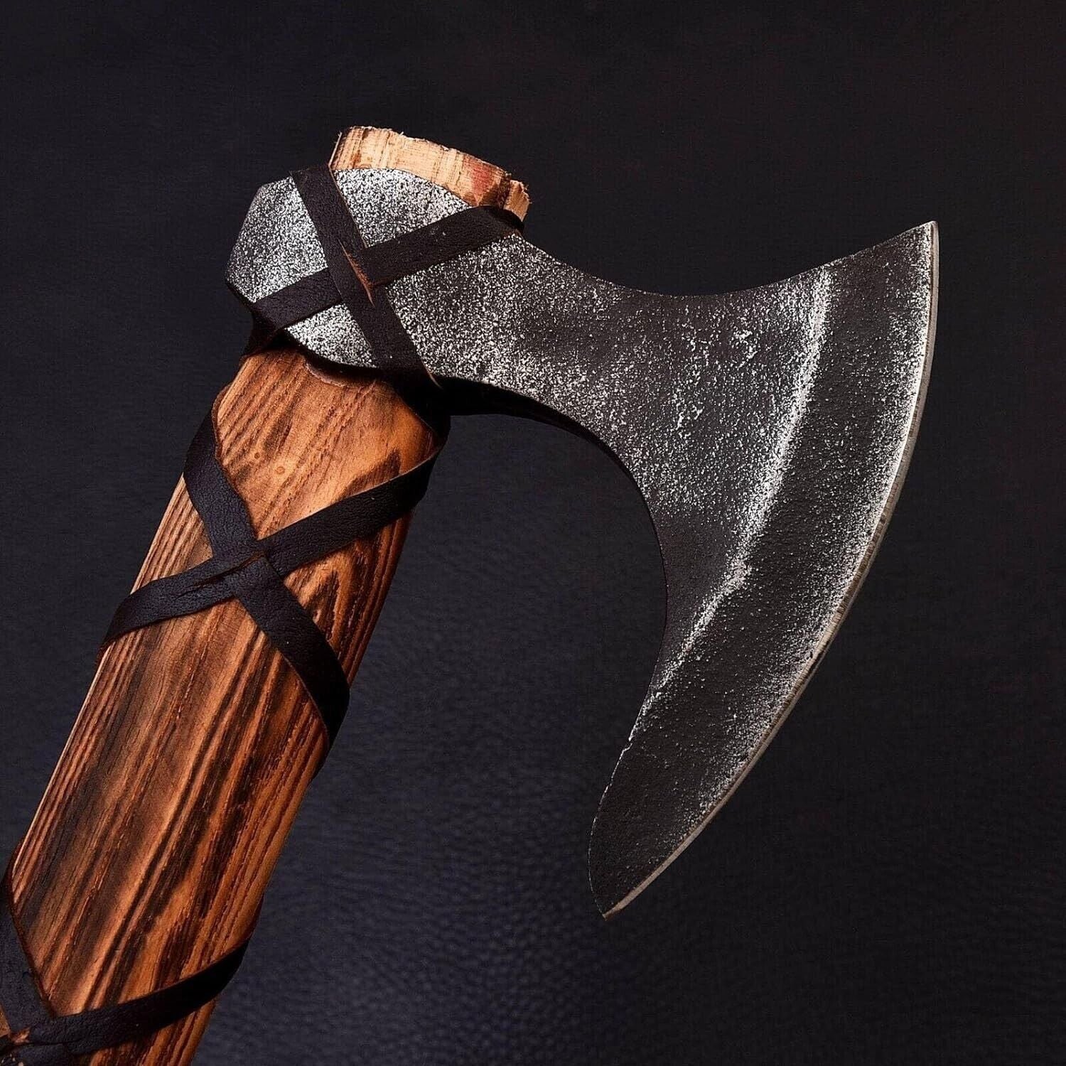 Embrace the spirit of the legendary Norse hero with this Ragnar Lothbrok Viking Axe, a real battle-ready weapon inspired by historical Viking designs. Forged from premium carbon steel, the bearded axe head measures 5 inches, providing exceptional cutting strength and durability for both functional use and display.