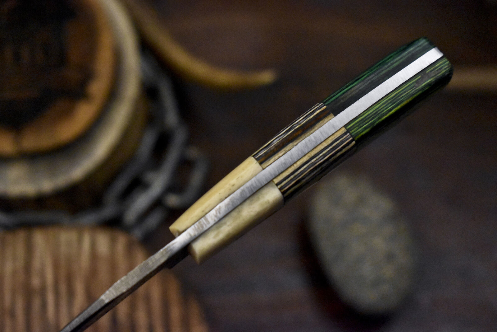 Experience unmatched control and beauty with this compact handmade skinner damascus knife, built for precision, strength, and timeless appeal. With an overall length of 7.0 inches and a blade length of 3.5 inches, this knife is perfectly suited for skinning, camping, and all-around field use. The blade features a mesmerizing rain drop damascus pattern, formed by folding premium 1095 and 15N20 steel and acid etching to expose layers of striking contrast and texture. This process enhances not only visual appeal but durability, edge retention, and resistance to wear.