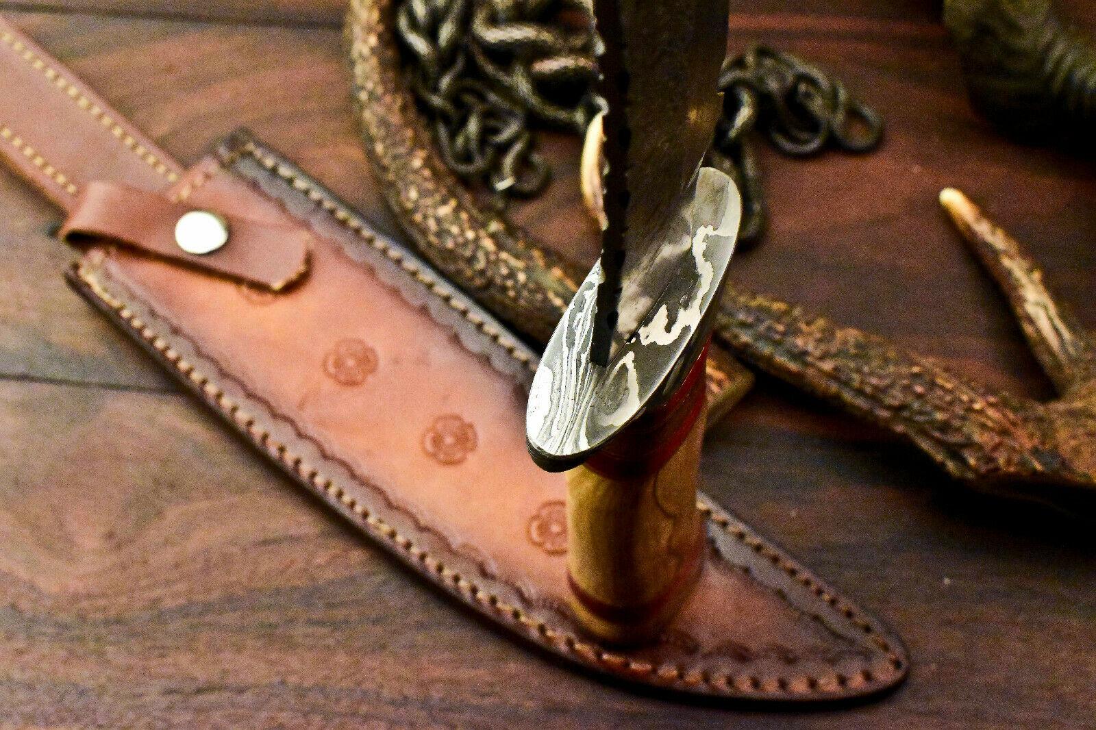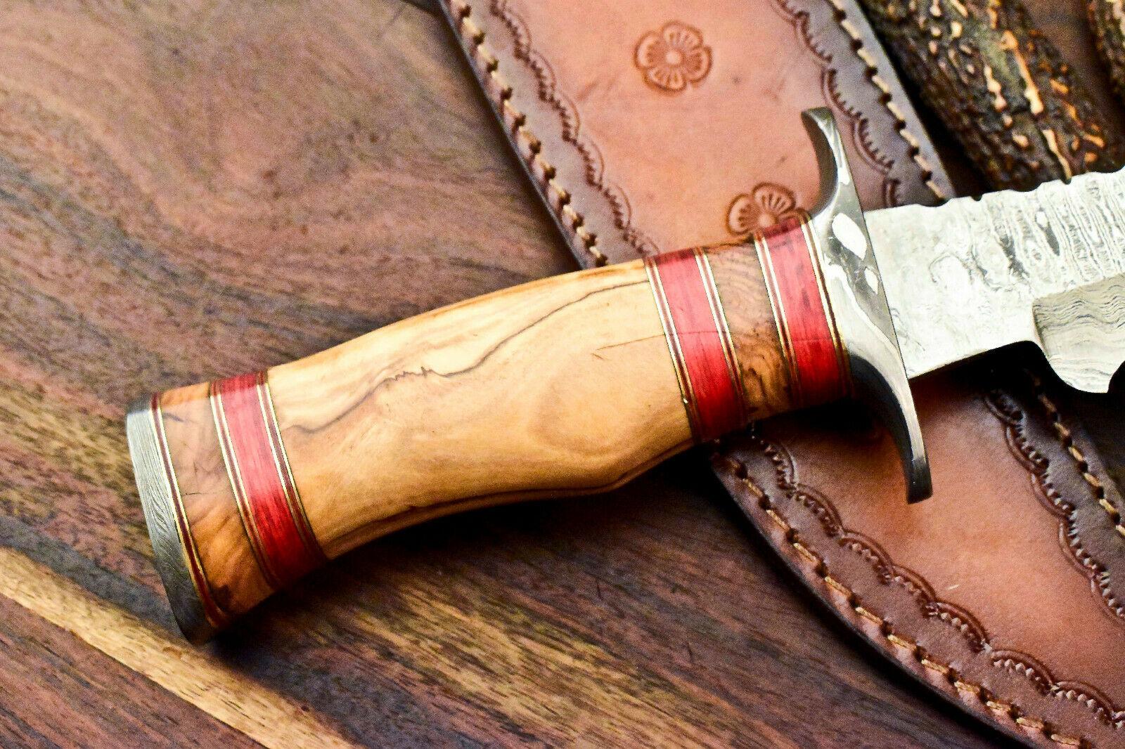 Rare Handmade Damascus Steel Bowie Knife – 15" Hunting Blade with Olive Wood Handle