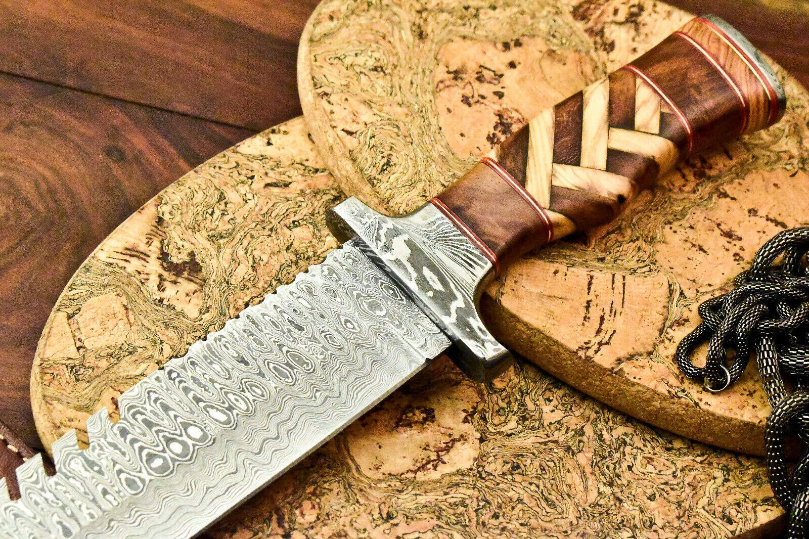 Rare Handmade Damascus Steel Bowie Knife – 16.75" Hunting Blade with Walnut Wood Handle