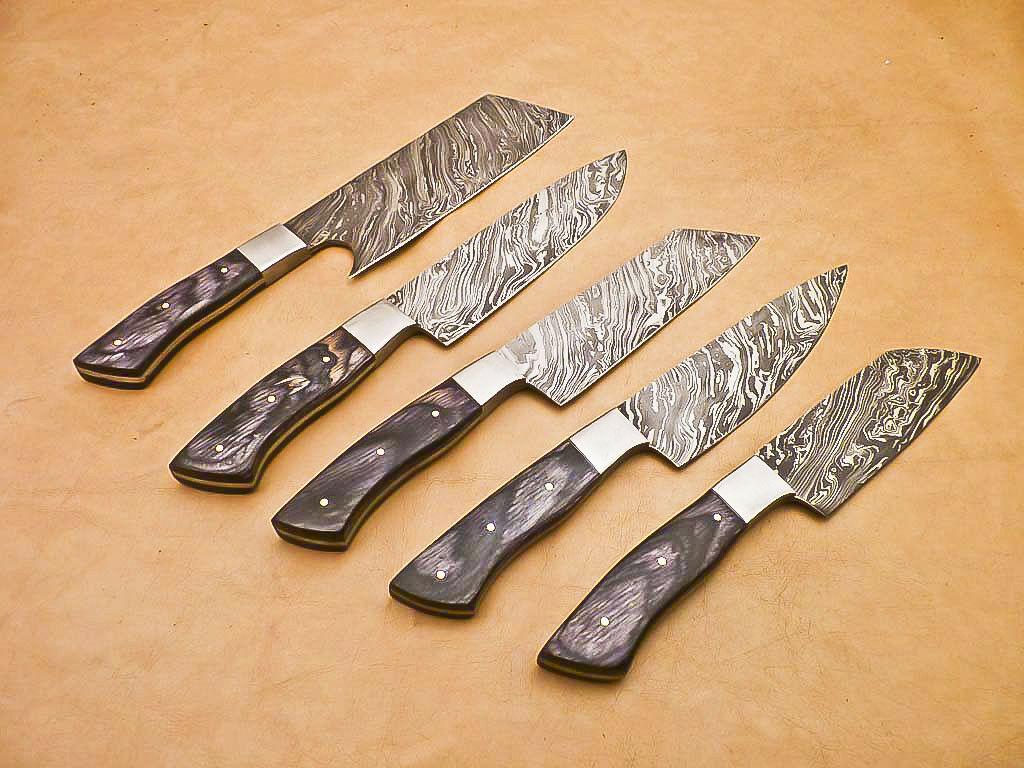 Rody Stan Handmade Damascus Chef Knife Set – 5 PCS Full Tang, 1095 Steel, Hardwood Handle