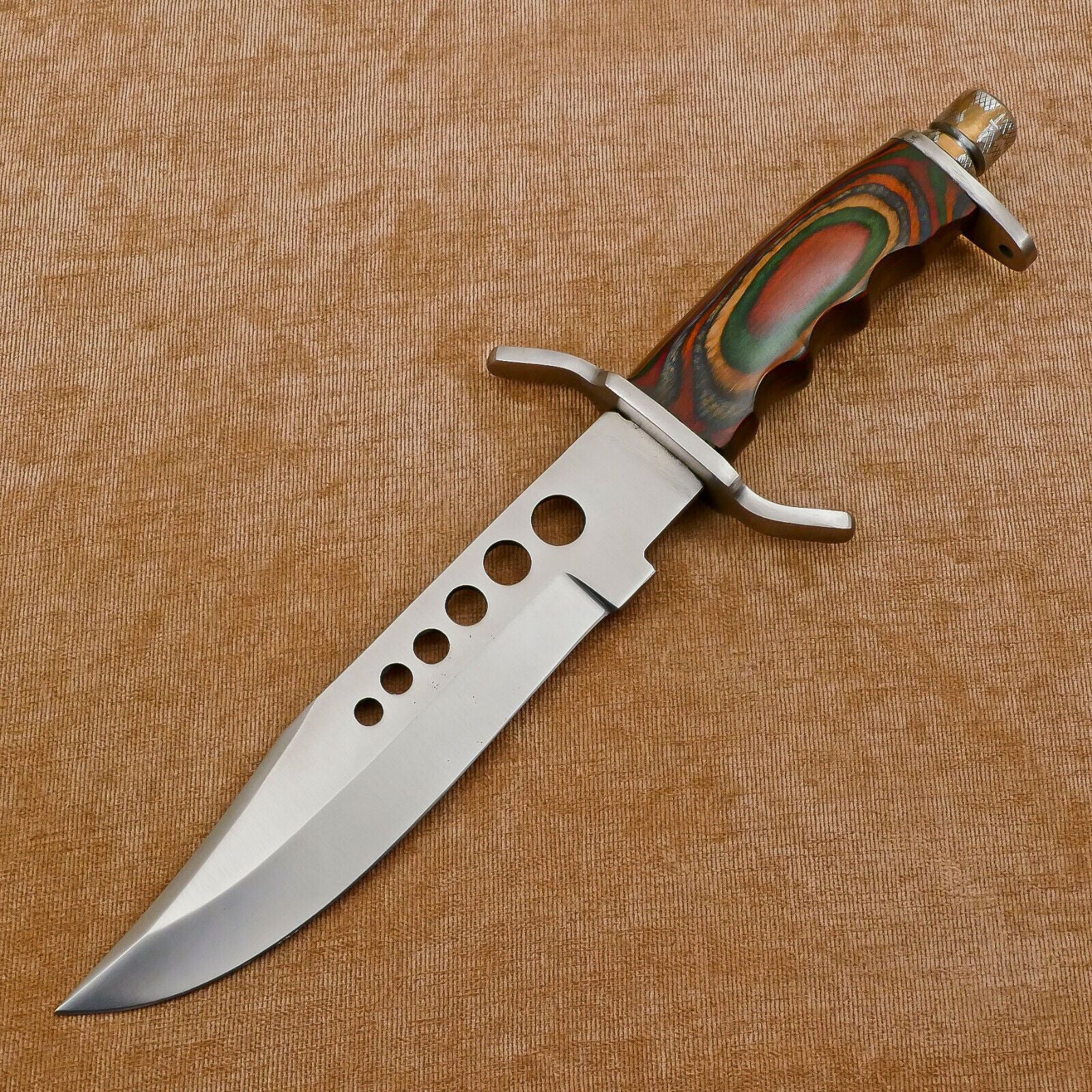 This rugged handmade D2 clip point fixed blade Bowie hunting knife is built for hunters, adventurers, and collectors who demand strength and precision in a single tool. Measuring 12 inches in total length, the knife is forged from premium D2 tool steel, offering superior edge retention, hardness, and resistance to wear. Its sharp clip point blade ensures excellent piercing ability and precision, while also being tough enough for heavy-duty outdoor tasks.The fixed blade design, combined with full tang construction, provides unmatched stability and durability, making this knife a dependable partner in demanding outdoor environments. Whether you’re skinning game, preparing campfire essentials, or tackling survival challenges, this Bowie knife is designed to perform.