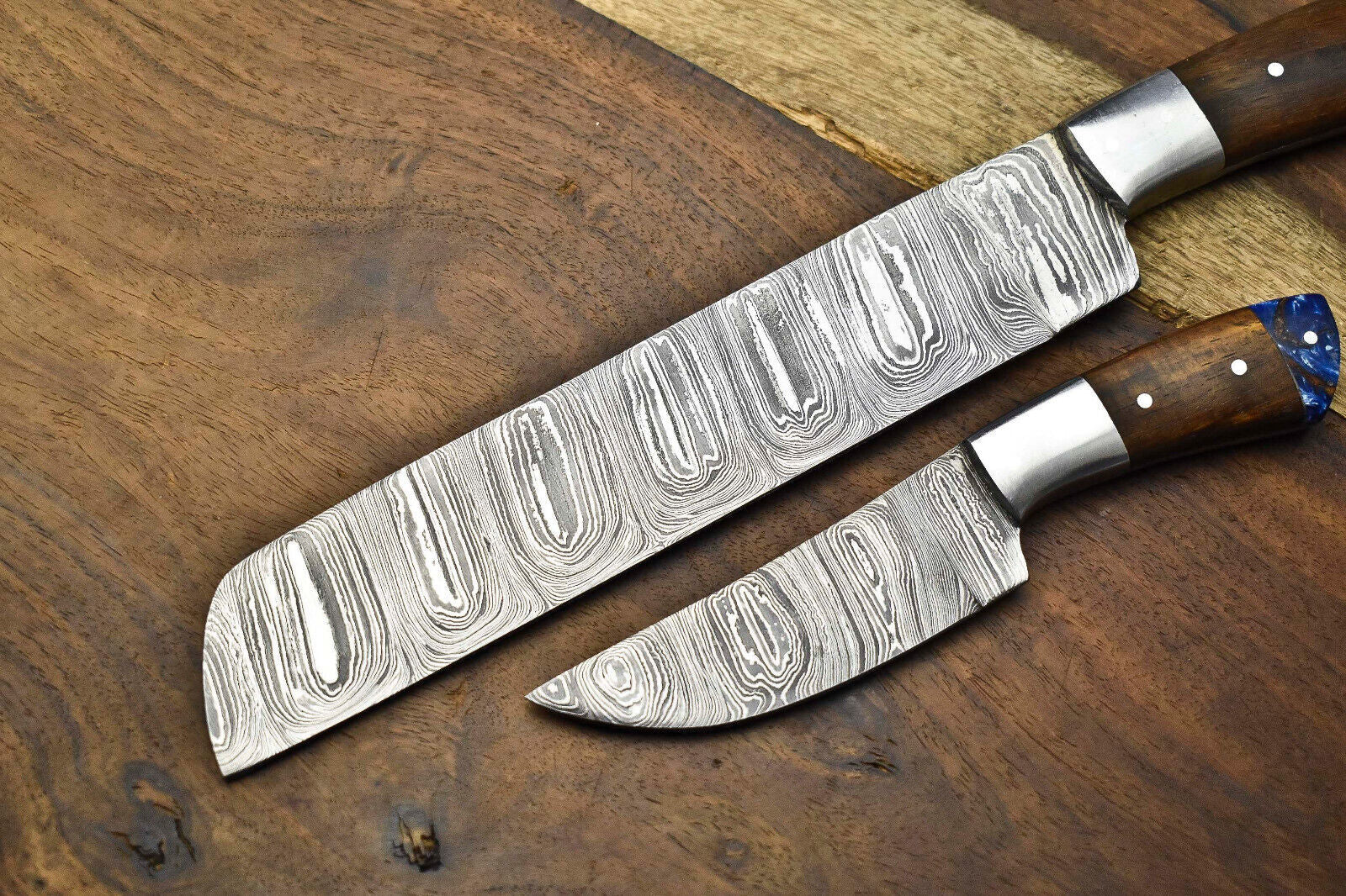 Set of 2 Handmade Damascus Steel Chef Knives | Full Tang Kitchen Knife Set