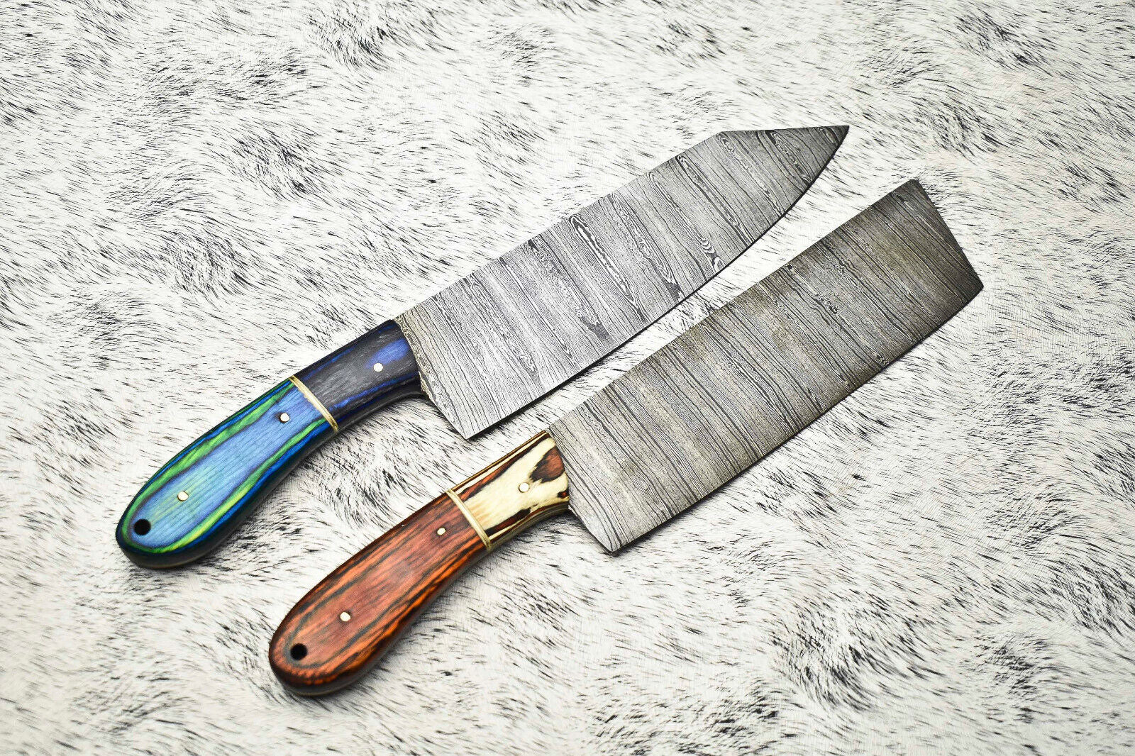 Set of 2 Handmade Damascus Steel Full Tang Chef Knives – Professional Kitchen Knife Set