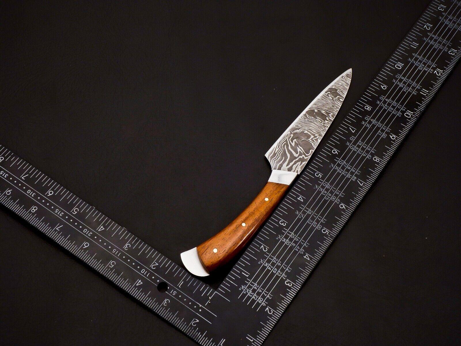 Each knife is made from a blend of 1095 and 15N20 steel, hand-forged and folded to create a stunning Damascus pattern with a minimum of 288 layers. The blade is acid-etched to enhance the pattern and provide a unique stained edge. Razor-sharp and oil-tempered to 58-60 HRC, this set is built for lasting performance.