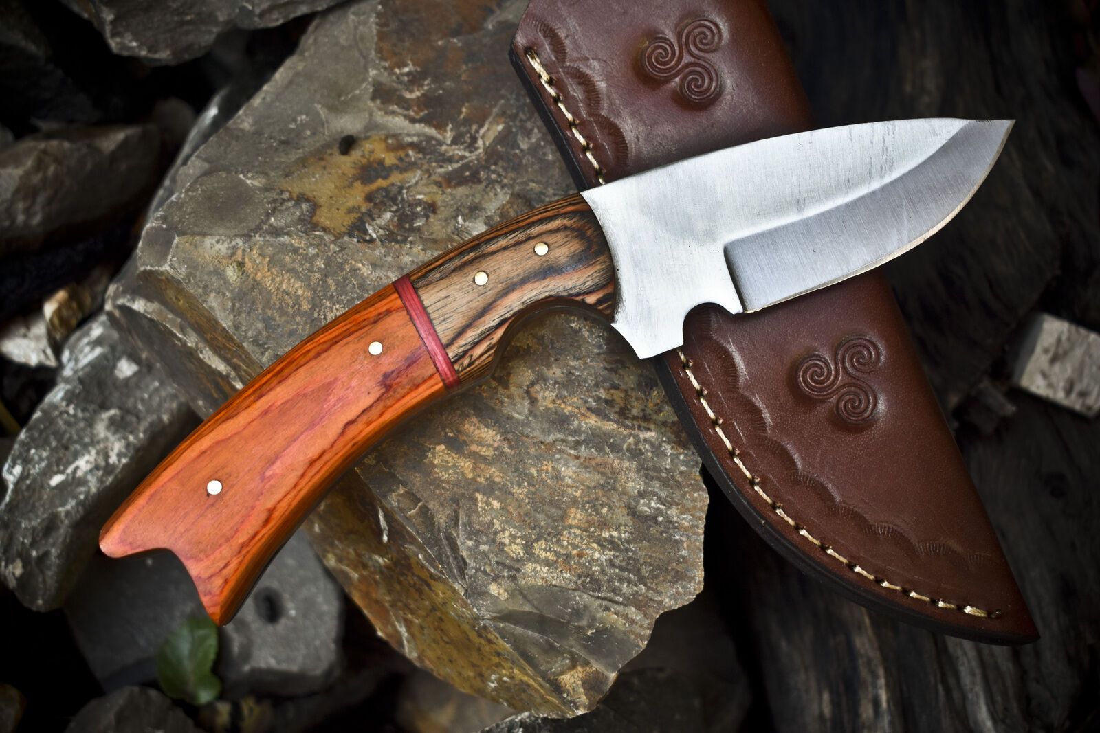 Skinner Knife – 440C Steel, Hard Wood Handle, Wooden Bolster, Hunting