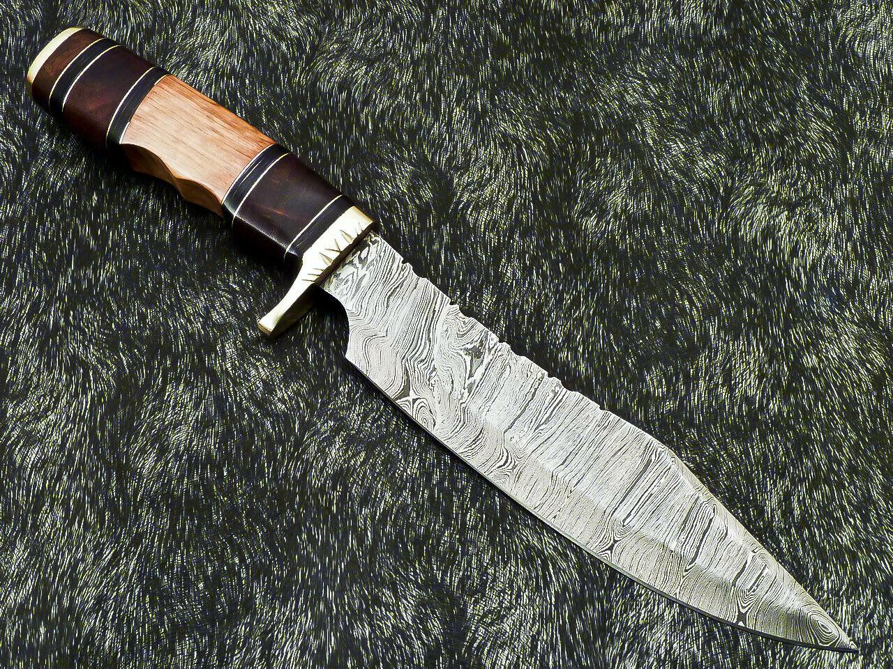 Embrace the essence of tradition with The Wilderness Sovereign, a pinnacle of hand forged artistry designed for the serious outdoorsman. This authentic 14-inch Bowie hunting knife is a testament to fully hand crafted excellence, where every curve and contour is meticulously shaped for both beauty and performance. The heart of this masterpiece is its formidable blade, crafted from high quality Damascus steel. Renowned for its distinctive, rippling patterns, this steel is not just visually stunning but also incredibly durable, offering a perfect balance of flexibility and razor-sharp edge retention that is essential for field dressing, skinning, and camp craft.