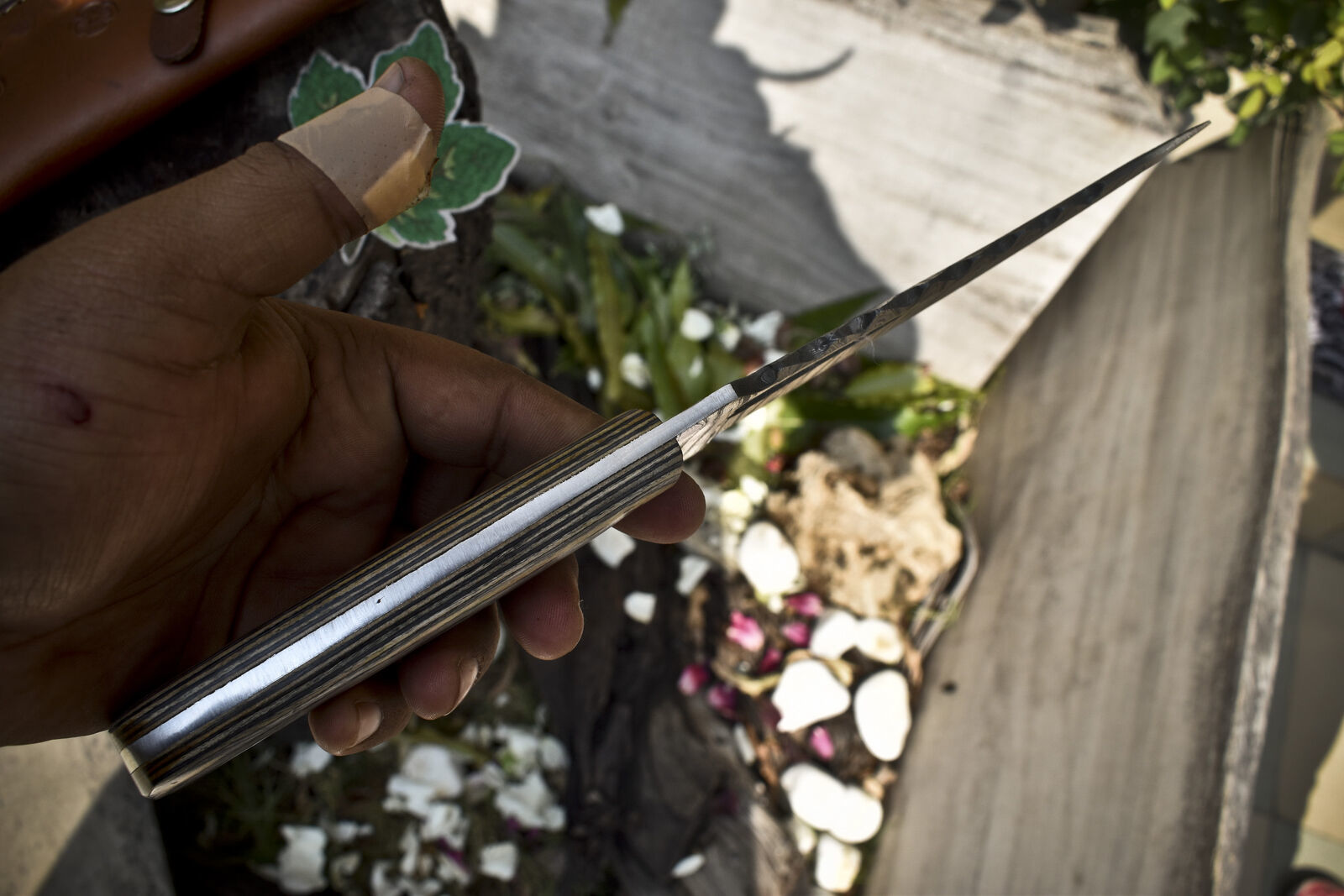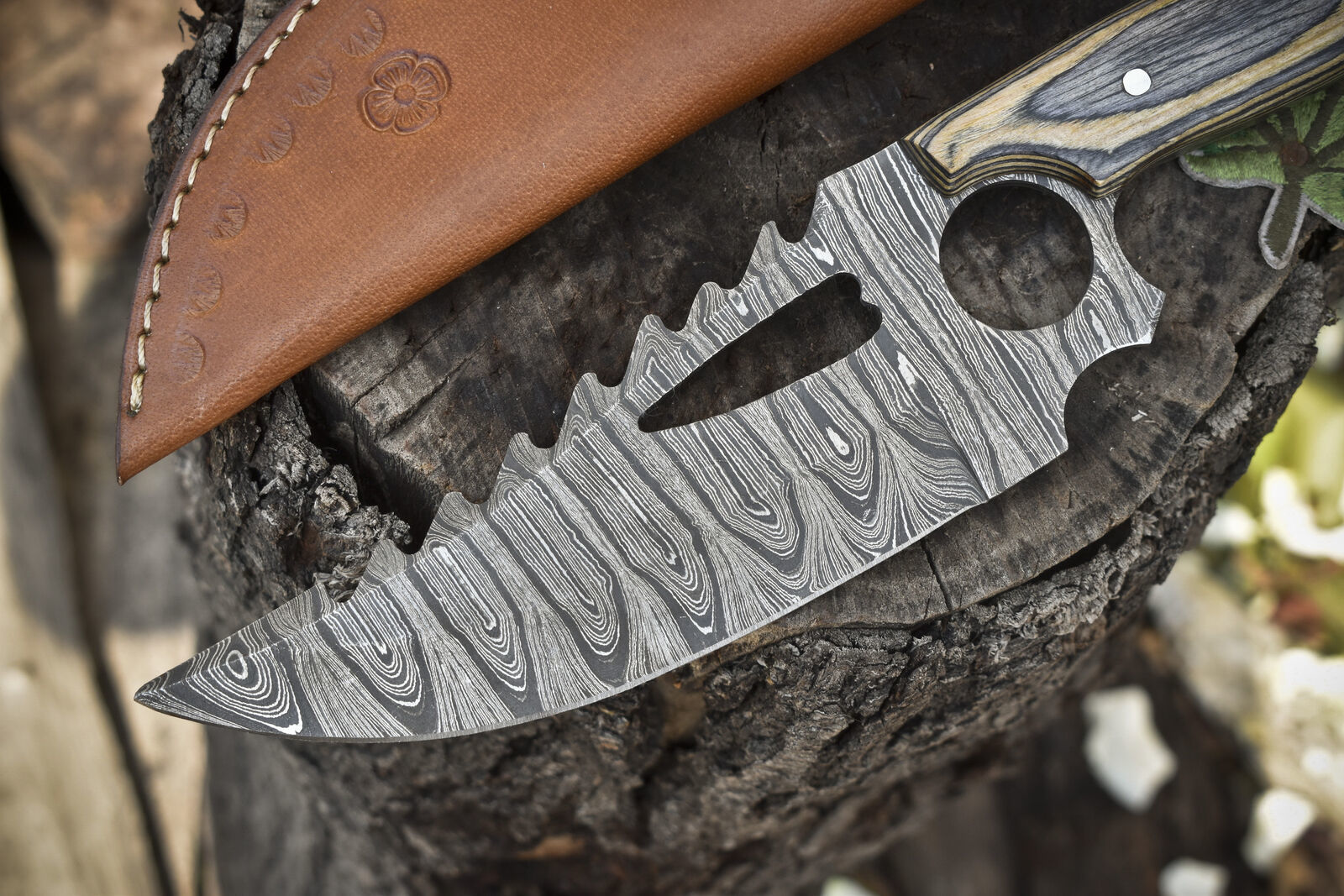 The Twist Damascus Hunting Skinner Knife is a versatile, high-performance tool designed for hunters, trappers, and outdoor adventurers who demand precision, durability, and striking aesthetics. Measuring 11 inches overall with a 6.5-inch blade and 4.5-inch handle, this knife excels in tasks such as skinning, trapping, wood cutting, and carving. Hand forged from premium 1095 and 15N20 high-carbon steels, the blade showcases a captivating twist Damascus pattern—a bold swirl of deep blacks and bright silvers, polished to a high sheen, symbolizing motion and energy frozen in steel. Oil tempered to 58–60 HRC, the blade delivers exceptional edge retention, razor-sharp cutting power, and durability under rugged conditions. The hardwood handle provides a solid, ergonomic grip, ensuring comfort and control during prolonged use. This knife comes with a hand-tooled, extra-stitched leather sheath for secure storage and portability. Each piece is 100% handmade, making every blade unique in pattern and finish. Perfect for field use, survival situations, or as a collector’s showpiece, this hunting skinner knife blends artistry with functionality in a way few tools can match.