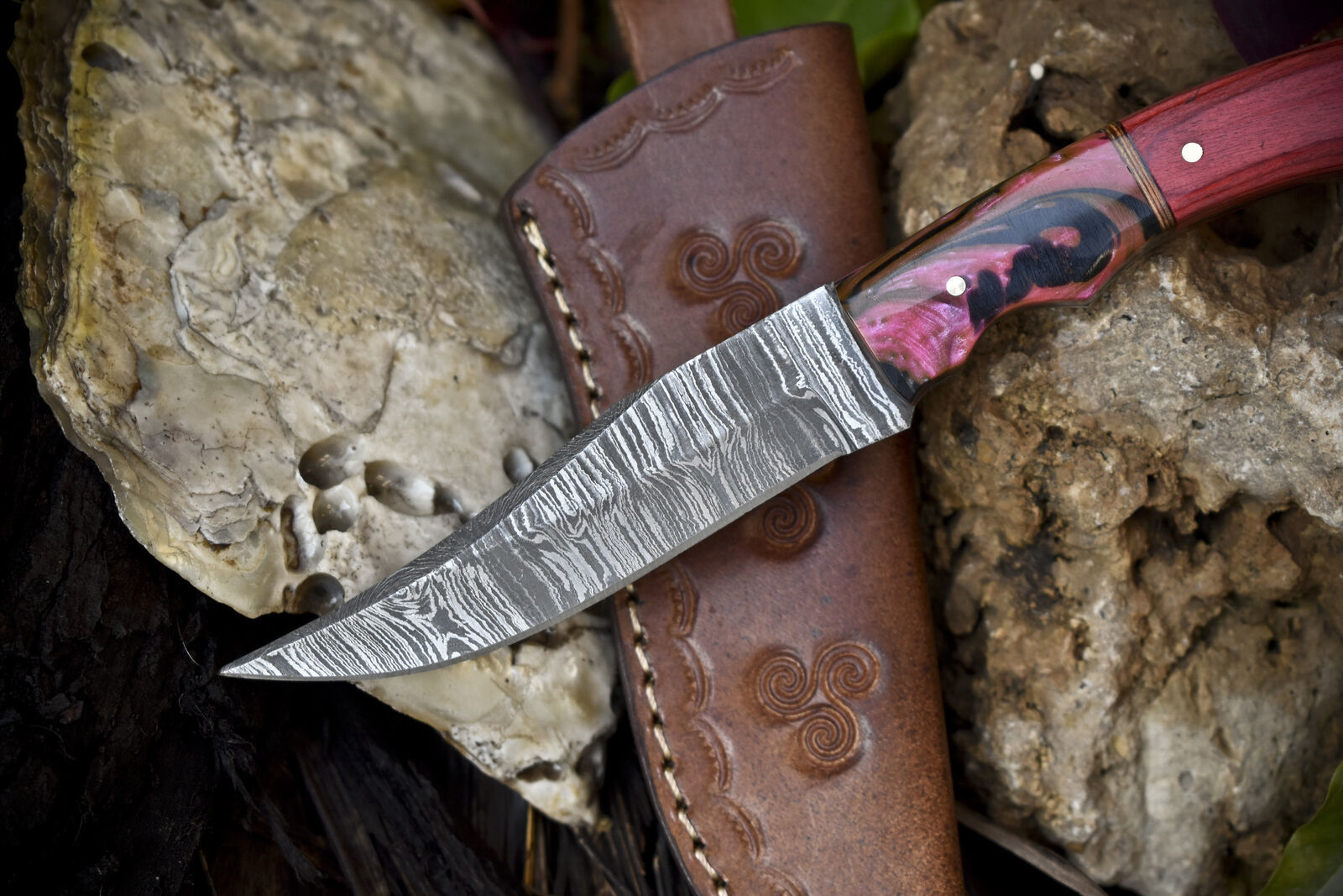 Measuring approximately 8 inches in overall length, with a 4-inch blade and 4-inch handle, this skinner knife is compact yet powerful. The blade is oil tempered to a hardness of 58–60 HRC, ensuring it stays razor-sharp during repeated use. The handle is crafted from mixed materials, providing a blend of aesthetics, grip, and resilience. Each knife is 100% handmade, offering a truly unique look and feel.
