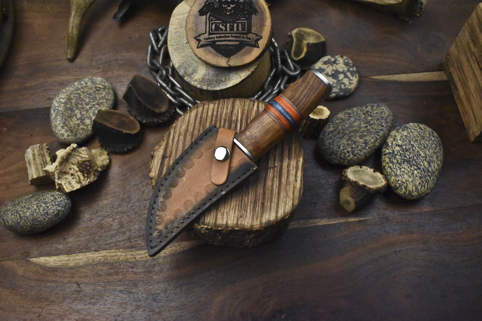 Whether used for skinning game or as a standout piece in a collection, this damascus knife custom handmade fixed blade hunting knife skinner is built for performance. It comes with a high-quality, hand-tooled leather sheath for secure carry and storage. A reliable companion for any hunter or outdoorsman.