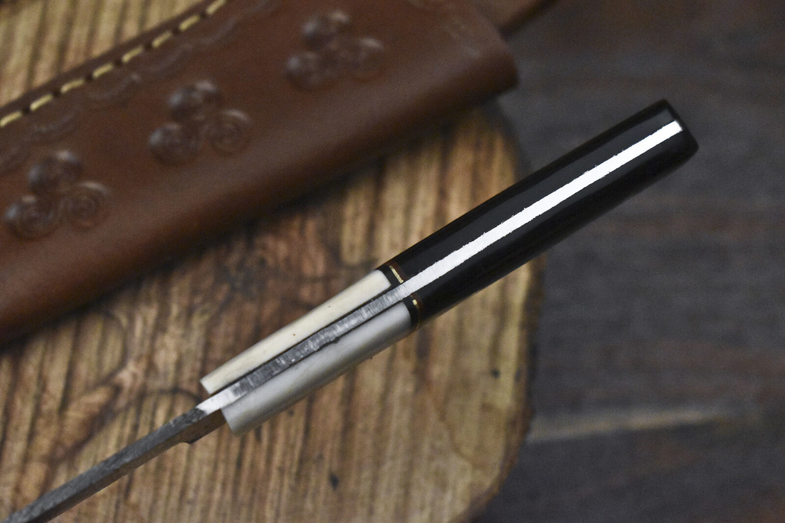 Measuring 7.5 inches overall, this knife is lightweight and well-balanced, ideal for precise skinning tasks or everyday outdoor use. The handle is carved from genuine bull horn, a tough and naturally textured material that provides a firm grip and a unique organic feel. The traditional skinner blade shape ensures efficiency in the field, while the full tang construction adds strength to the tool.