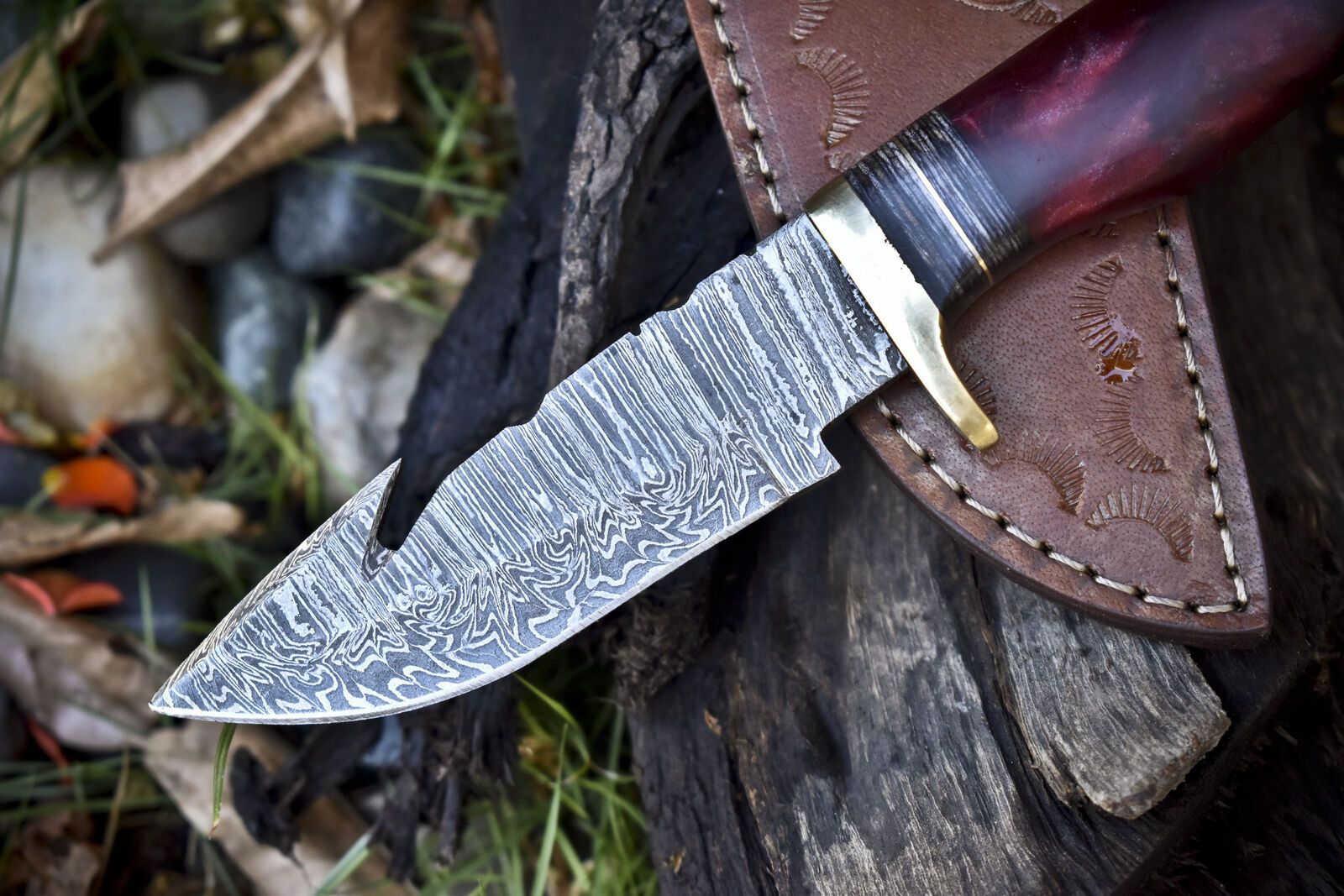 A hand-stitched leather sheath is included for safe carry and storage. This standout damascus skinner knife makes a great addition to any hunter’s gear or collection.
