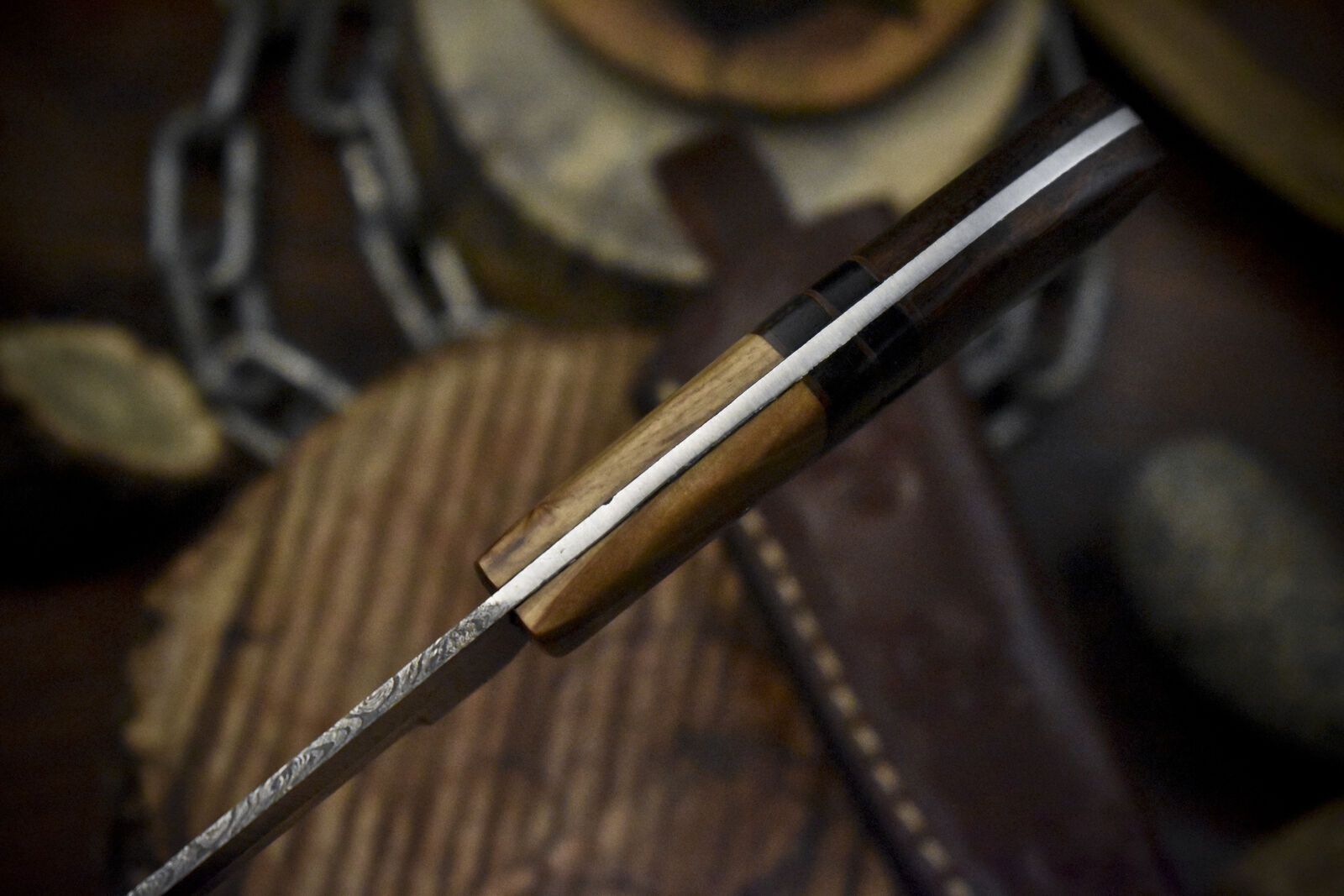 This damascus knife custom handmade fixed blade hunting knife skinner comes with a hand-tooled leather sheath for safe carry. It’s not just a knife—it’s a testament to traditional forging and expert design. Ideal for hunters, outdoorsmen, and collectors seeking a rugged, reliable blade.