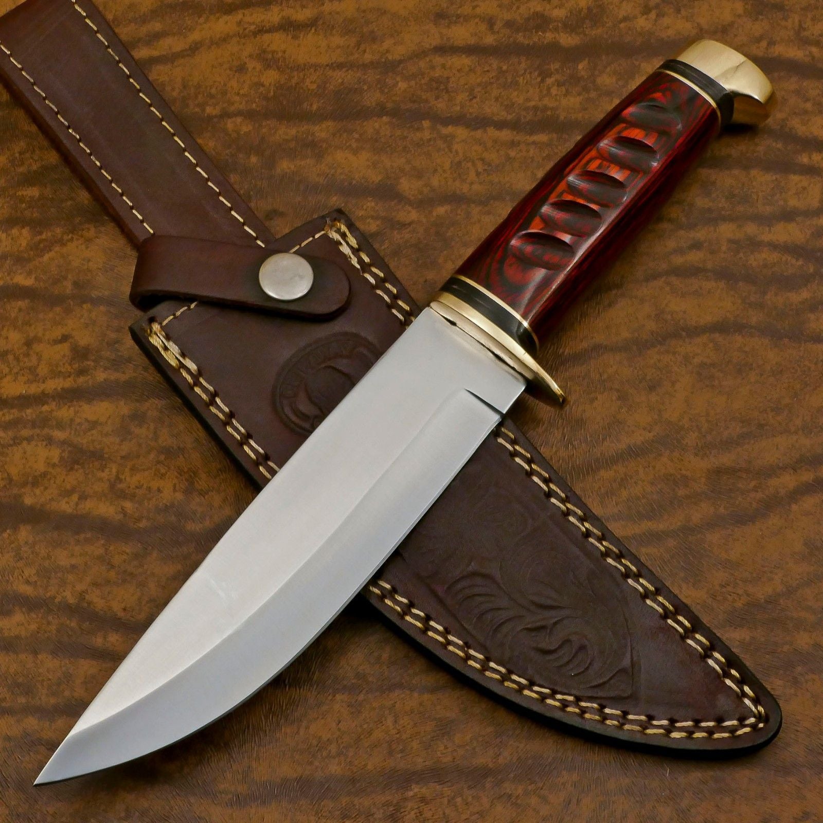 Prepare for any outdoor adventure with our Ultimate Custom Handmade D2 Steel Bowie Knife, featuring a durable 12-inch full tang blade designed for hunters, campers, and survival enthusiasts. Crafted from premium D2 steel, this knife delivers exceptional hardness, excellent edge retention, and superior resistance to wear and corrosion, making it a reliable companion in the wild. The full tang construction ensures maximum strength and balance, allowing you to tackle heavy-duty tasks such as chopping, slicing, or field dressing game with confidence. Its ergonomic handle provides a secure and comfortable grip, even during prolonged use in demanding conditions. Each knife is handcrafted, making every piece unique and a combination of precision, functionality, and artistry. The included sturdy sheath ensures safe storage and easy portability, perfect for camping trips, hunting excursions, or survival scenarios. Combining style, durability, and performance, this 12-inch D2 steel bowie knife is not only a practical outdoor tool but also a collectible piece for enthusiasts who appreciate superior craftsmanship. Make this versatile knife part of your outdoor gear and experience reliability, strength, and elegance in every adventure.