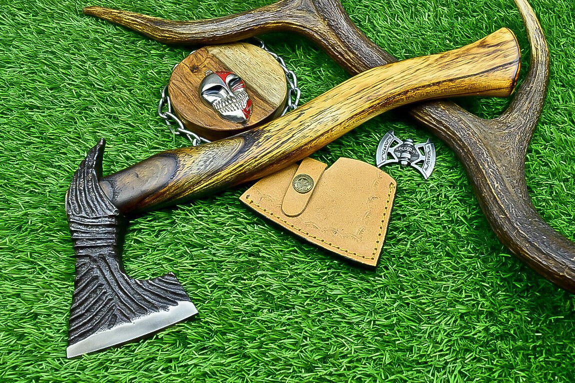 Viking Axe – Handcrafted Carbon Steel Tomahawk with Leather Sheath