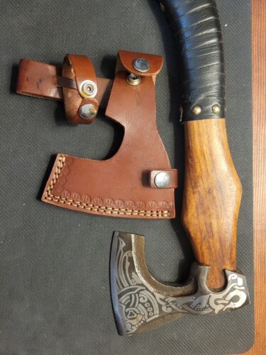 Viking Handmade High Carbon Steel Tomahawk Hatchet Axe with Leather Sheath