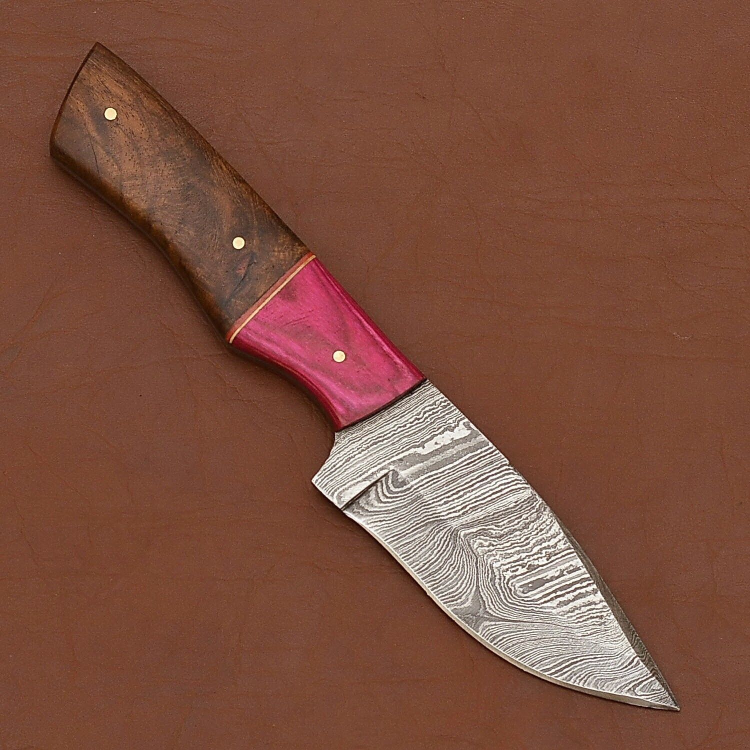 Wood Handle Damascus Steel Skinning Knife – 8 Inch Fixed Blade for Hunting and Camping